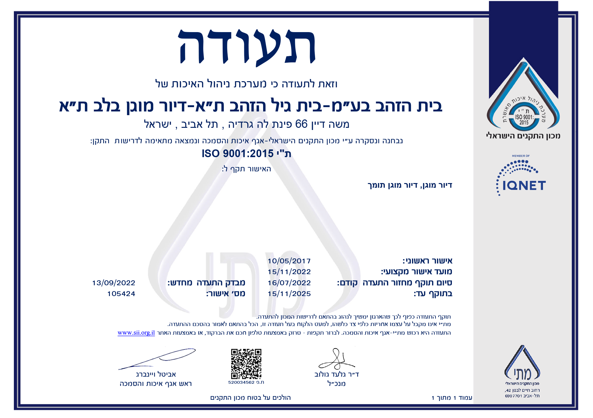 שמחזיקים בתעודת ISO 9001:2015 – תקן בינלאומי מחמיר לניהול איכות.